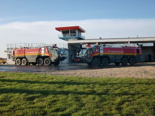 Die beiden Löschfahrzeuge am Pariser Flughafen Orly.