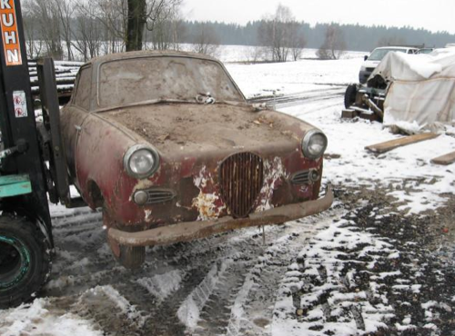 Auch so kann man Autos fotografieren – ideal ist es nicht: Der „Scheunenfund“ eines Goggomobil Coupé aus dem Jahr 1957 ...