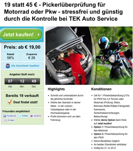Eine Wiener Firma bot am Dienstag (28.2.) im Internet §-57a-Überprüfungen ab 19 € an.
