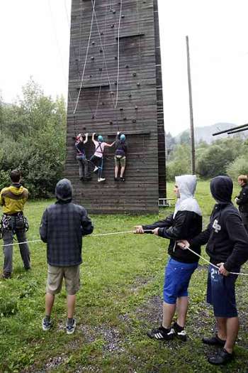 Gemeinsam mit der Weltmeisterin im Kickboxen, Nicole Trimmel, stand ein Morgenlauf auf dem Programm. Die Lehrlinge hatten außerdem Gelegenheit, Konzentration und Kommunikationsfähigkeit beim Bezwingen einer Kletterwand unter Beweis zu stellen.