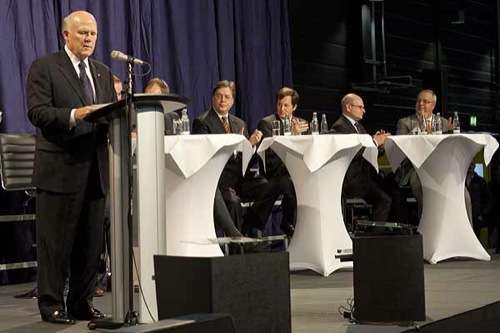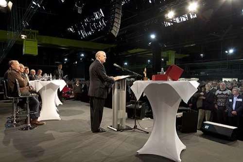 Mehrere tausend Mitarbeiter von Opel hatten sich in der Halle K48 in Rüsselsheim eingefunden, um den Worten des Konzernchefs zu lauschen: Dan Akerson bewertete die wirtschaftlichen Rahmenbedingungen in Europa zwar weiterhin als schwierig, strich aber auch die Bedeutung von Opel für den globalen Erfolg von General Motors hervor. „Ein Unternehmen wie GM braucht eine starke Präsenz in Europa – ein starkes Design, eine starke Entwicklung, eine starke Fertigung und ein starkes Vertriebsnetz. Diese Rolle erfüllt Opel.“