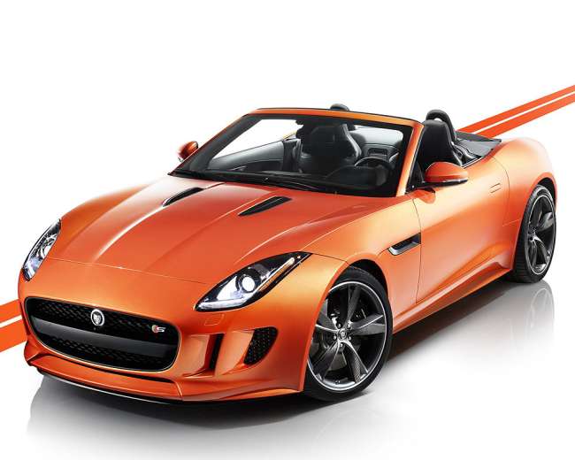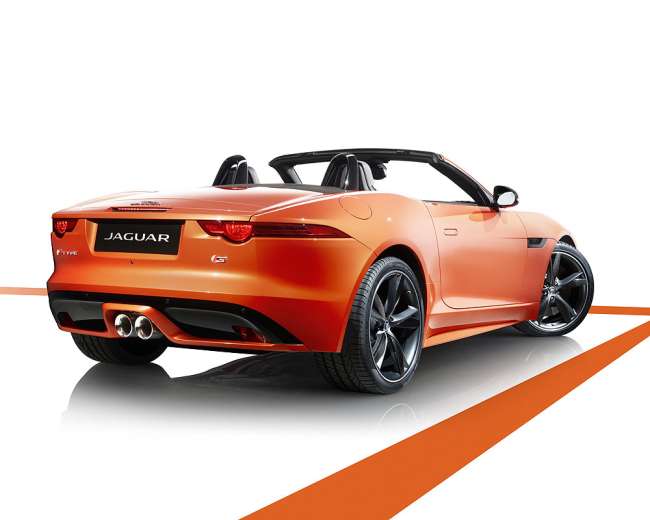 Der Roadster F-Type feierte in L.A. seine Publikumspremiere, das ausgestellte Fahrzeug zeigt Individualisierungsmöglichkeiten wie die Lackierung in „Firesand Orange“ sowie „Black Pack“ und „Design Pack“.