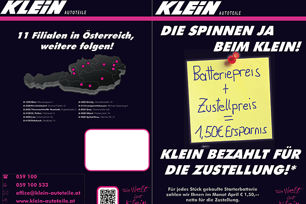Vom 1.4. bis 30.4.2013 bietet Klein Autoteile VertriebsgmbH Varta Batterien – siehe angefügten Werbefolder – zu einem noch nie dagewesenen Preis an, suggeriert das Grödiger Unternehmen in seiner Aussendung.