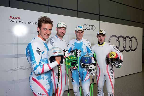 Hundertstelsekunden entscheiden bei Skirennen oft über Sieg oder Niederlage: Vier Österreichische Ski-Asse testeten kürzlich im Audi-Windkanal in Ingolstadt ihr Material.