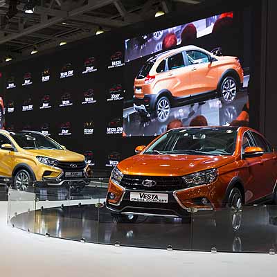 Der Salon, den man aufgrund des überschaubaren Markenangebots als Ausschnitt des darniederliegenden russischen Automobilmarkts einstufen muss, bot dem heimischen Hersteller AvtoVAZ die Möglichkeit, auf einer gewaltigen Standfläche eine Leistungsschau mit Blick in die Zukunft abzuliefern.
