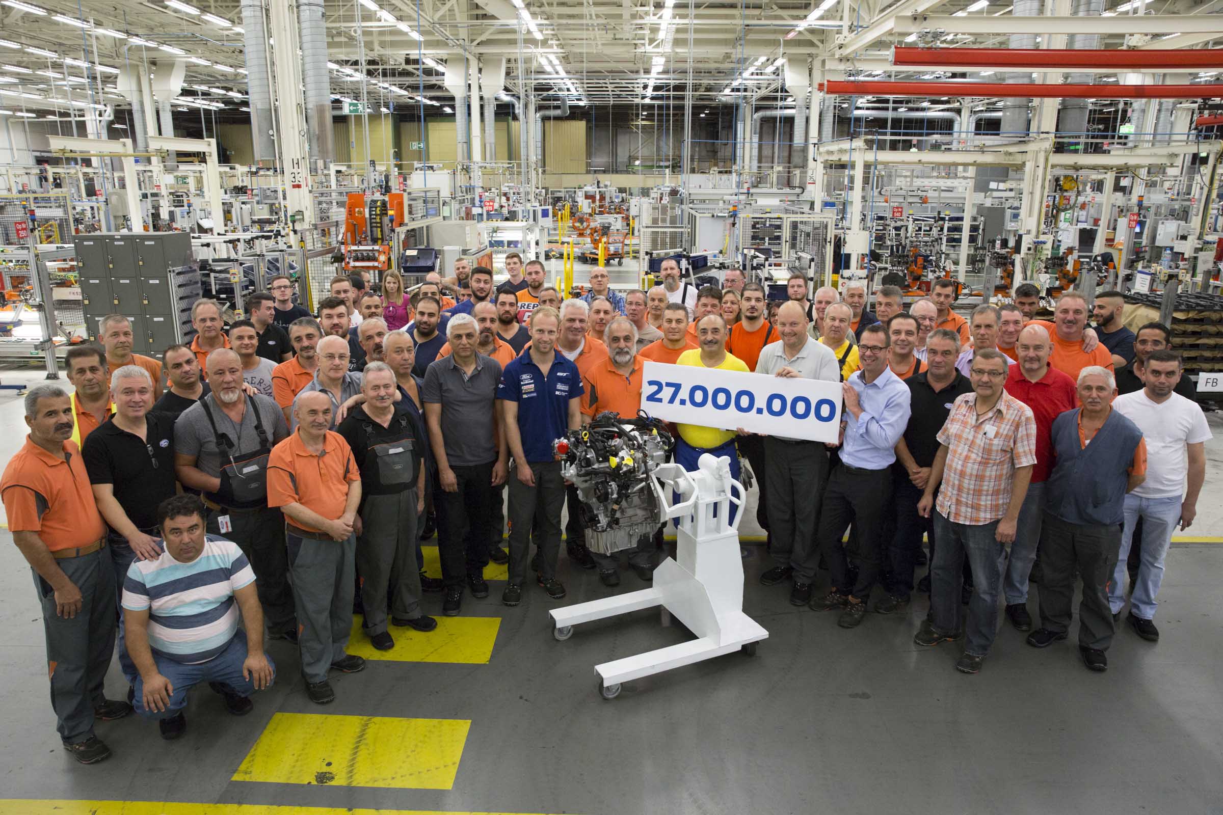 Ford GT-Pilot Stefan Mücke ließ es sich nicht nehmen, am Jubiläumsmotor mitzuschrauben.