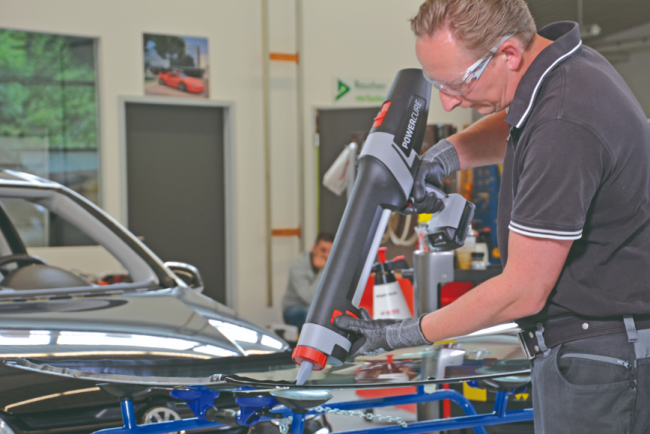 Das Tauschen der Windschutzscheibe könne, wie Part mitteilt, innerhalb weniger Minuten erfolgen: Zuerst werden Verunreinigungen mit Sika Cleaner G+P und Sika Cleaner PCA Reinigungs-Pads entfernt, danach wird mit PCA Reinigungs-Pads Sika Primer-207 aufgetragen. Im 3. Schritt appliziert der Karosseriebauer mit dem PowerCure Dispenser den Scheibenklebstoff SikaTack Elite. Nach 60 Minuten sitzt die neue Frontscheibe absolut fest.