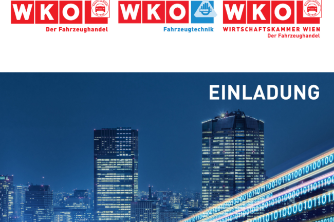 Die Veranstaltung in Kooperation mit BG Fahrzeughandel, Wiener LG Fahrzeughandel, BI Fahrzeugtechnik, VFT, VRÖ und Fuhrparkverband findet am 2. Oktober 2019 von 9.30 bis ca. 17 Uhr im Technischen Museum Wien statt, die Einladung finden Sie weiter unten zum Download. Anmeldungen unter fahrzeughandel@wko.at •