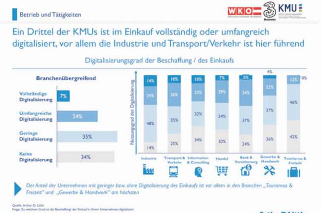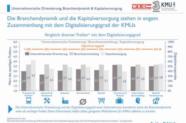 In den vergangenen Jahren haben zahlreiche Studien auf den digitalen Aufholbedarf der heimischen KMUs hingewiesen. Aus einer druckfrischen Studie von Arthur D. Little und der Wirtschaftskammer geht die gute Nachricht hervor, dass das Digitalisierungsniveau im Vergleich zum Vorjahr deutlich gestiegen ist, zumindest sehen die Unternehmen den Einfluss der Digitalisierung deutlich positiver und erhoffen sich durch die digitale Transformation neue Chancen.