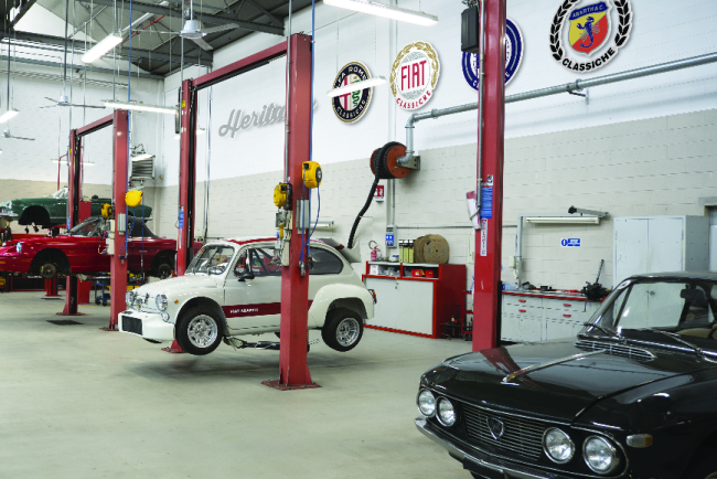 Die Officine Classiche wurden 2015 in der früheren Zentrale von Abarth in der Via Plava in Turin, im ehemaligen Fabrikgebäude Nummer 83 des Werks Mirafiori eröffnet. FCA Heritage bietet hier Reparatur-, Restaurierungs- und Zertifizierungsaktivitäten für historische Fahrzeuge der italienischen Marken der Gruppe an. Die Spezialisten der Officine Classiche betreuen dabei nicht nur die umfangreiche Sammlung von FCA Heritage, sondern stehen auch privaten Sammlern beziehungsweise Besitzern von Oldtimern zur Verfügung. Die Verwendung von originalen Produktionsdaten und technischen Zeichnungen, aufbewahrt im historischen Unternehmensarchiv, garantieren zusammen mit dem Erfahrungsschatz der Techniker hohe Präzision bei Arbeiten an allen historischen Fahrzeugmodellen von Abarth, Alfa Romeo, Fiat und Lancia.