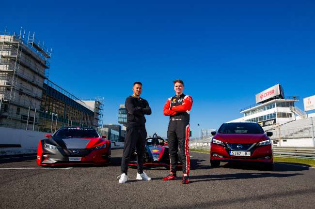 Als Nissan-Markenbotschafter brachte Hazard auf dem Circuito del Jarama den Nissan Leaf e+ und den Leaf Nismo RC an seine Grenzen. Bevor das Streckentraining starten konnte, erhielt er Tipps des Rennfahres insbesondere zum Leaf Nismo RC, der innerhalb von 3,4 Sekunden auf 100 km/h beschleunigt.