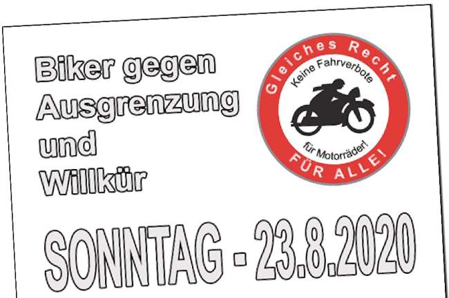 Die Motorradfahrer sind aufgerufen sich am 23. August 2020 um 9.30 Uhr am Parkplatz KIKA Wien-Nord einzufinden. Unter Einhaltung der StVO führt die Demofahrt ab 11 Uhr über Wagramer Straße, Reichsbrücke, Praterstern, Praterstraße, Ring, und Gürtel auf den Kahlenberg, wo es nach einer Pause über die Höhenstraße, und Floridsdorfer Brücke retour zum KIKA-Parkplatz geht. Das Eintreffen dort wird für 14.30 Uhr angestrebt, ehe es um 15 Uhr zu einer Abschlusskundgebung kommt.