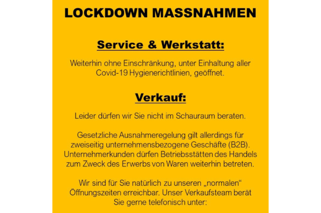 Die Präzisierung zu den Lockdown-Regeln für den Automobilhandel v. a. durch den Arbeitskreis der Automobilimporteure ist den Mitgliedern hilfreich.