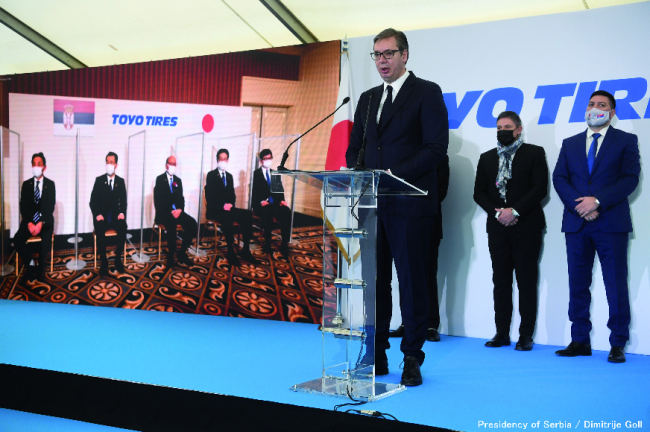 Serbiens Präsident Aleksandar Vučić hielt seine Ansprache vor Ort: "Dies ist eine so wichtige und wertvolle Investition für Serbien, dass ich nicht die richtigen Worte finden kann, um sie zu beschreiben. Mein besonderer Dank gilt allen Menschen aus Japan und unserem Land, die die Ansiedlung eines so wichtigen und mächtigen Unternehmens in Serbien unterstützt haben." Mit dem neuen Werk in Serbien wird Toyo Tire seinen 8. Produktionsstandort eröffnen und damit den ersten Schritt in der Umsetzung der globalen Wachstumsstrategie des Unternehmens markieren.