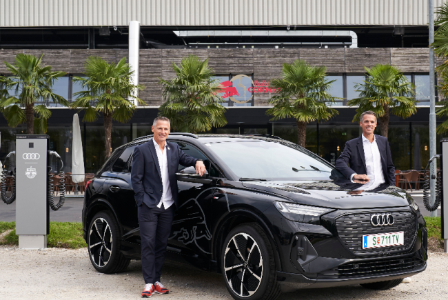 Bereits im August starteten der FC Red Bull Salzburg und Audi ihren gemeinsamen Weg in die nachhaltige Mobilität. Spieler, Mitarbeiter, Verantwortliche und das Management des übernahmen ihre Audi Fahrzeuge – darunter Audi Q4 e-tron, Audi e-tron Sportback, Audi e-tron S, Audi Q7 TFSIe und Audi Q5 TFSIe.