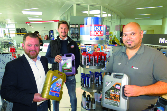 Thomas Paukert,Österreich-Chef von Liqui Moly, ist froh darüber, dass sein Unternehmen weiterhin viel Wert auf einen funktionierenden Außendienst legt: "Aufgrund der Vielfalt der Produkte brauchen wir kompetente Mitarbeiter." Einer von ihnen ist Michael Mehlem: "Wir haben den Ruf, dass wir nicht irgendein Öl verkaufen, sondern jenes, das zu dem jeweiligen Motor passt. Das ist manchmal schwer zu argumentieren, zahlt sich aber aus: Und die Werkstätten wissen, dass qualitativ gute Produkte besser sind als 08/15-Ware." Das bestätigt auch Christian Kogler, der von seinem Vater Erich die Kfz-Werkstätte Pühringer in Pasching übernommen hat: "Wir sind damals über den Birner zu euch gekommen", sagen die Koglers bei unserem Besuch. "Das Gute bei Liqui Moly ist: Es gibt keine Probleme, sondern nur Lösungen." Eine davon ist der Ölwegweiser: "Ich schaue oft nach, welches Öl in welchen Motor passt", meint Christian Kogler. Auch er lobt die Additive: "Die perfekte Wahl: Sie helfen oft, bevor man die Injektoren tauschen muss."