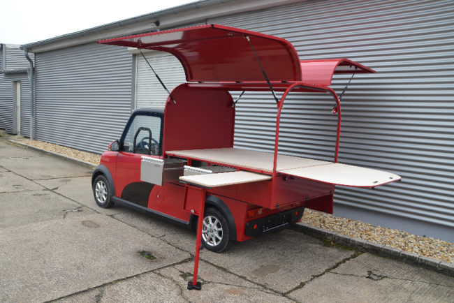 Dank der vom Hersteller angegebenen Reichweite von bis zu 495 km und einer Zuladung von bis zu 500 Kilogramm bieten sie eine klimafreundliche Lösung für Gastronomen, die ihr kulinarisches Angebot an wechselnden Outdoor-Standorten anbieten wollen. Da sie keinerlei lokale Emissionen verursachen, eignen sie sich darüber hinaus für den Einsatz in Innenräumen oder Messehallen.