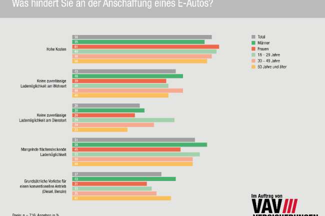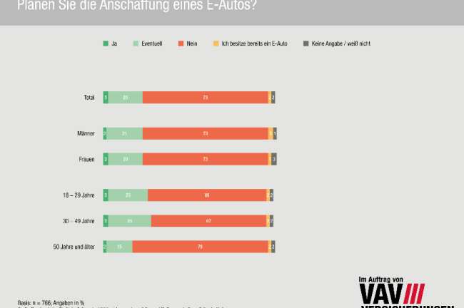„Mit gutem Grund ist die überwiegende Mehrzahl der in Österreich zugelassenen E-Autos Firmenwagen. Um die Elektromobilität auch für Private attraktiv zu machen, fehlt es an Infrastruktur und Kostentransparenz. Hier liegen noch enorme Herausforderungen für ein Gelingen der Mobilitätswende“, sagt Sven Rabe, Vorstandsvorsitzender der VAV Versicherung. Gefragt nach unmittelbar bevorstehenden Anschaffungen gaben lediglich drei Prozent an, sich für ein Elektrofahrzeug entscheiden zu wollen. 20 Prozent der Befragten geben an, eventuell ein Elektroauto anzuschaffen.