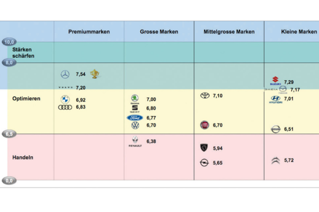 In der Schweiz wurden die Händler schon früher befragt als in Österreich: Mercedes holte sich den Gesamtsieg.