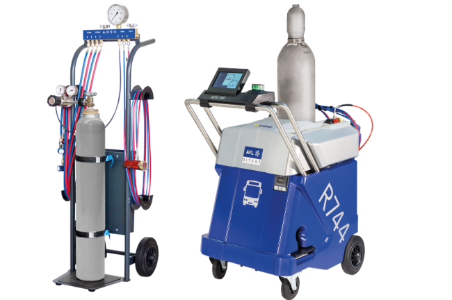 Die AVL DiTest-Klimaservicegeräte ADS 310 und 340 ermöglichen ein schnelles und vollautomatisches Klimaservice an Pkws und Bussen mit CO2-Klimaanlagen.