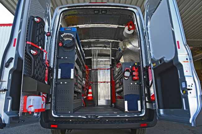 Die Idee: Für viele Arbeiten muss nicht die Werkstatt aufgesucht werden, da 70% der Defekte auch vor Ort behoben werden können. Den Innenausbau samt Werkzeugbestückung und Schulung übernahm Würth HandelsgesmbH, die Umbaukosten belaufen sich jeweils auf € 25.000.