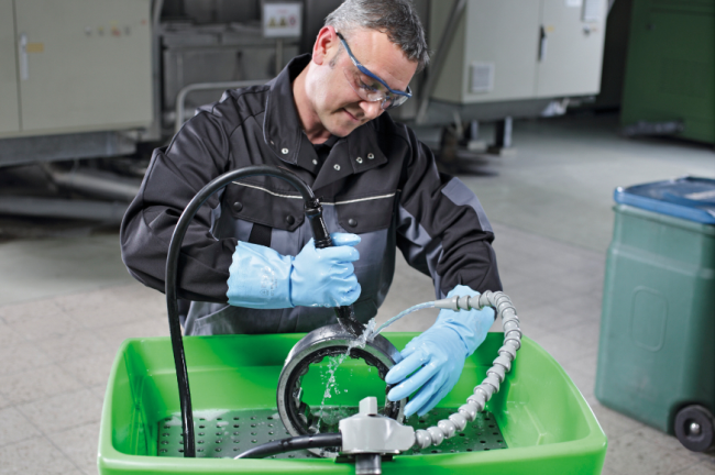 Das ist ideal z. B. bei Arbeiten an Hebebühnen, Pumpen oder Rohrleitungen, als Ablage für ölige Werkzeuge und Maschinenteile oder präventiv statt Ölbindemittel und Granulat. Die Matten werden termingerecht abgeholt, professionell und umweltgerecht gewaschen und wieder sauber ausgeliefert. Die Mewa Pinselwaschtische sorgen zuverlässig für -hervorragende Reinigungsergebnisse – ganz ohne gesundheitsgefährdende Substanzen. Die Bio-Circle Waschtische (Mini u. Maxi) arbeiten mit einer Reinigungsflüssigkeit auf Basis natürlicher Mikroorganismen, die Fette und Öle biologisch abbauen und selbst hochgradig verschmutzte Teile säubern. In vereinbarten Intervallen wird die Reinigungsflüssigkeit nachgefüllt, werden Filter gewechselt, Verschleißteile ersetzt, eine komplette technische Wartung und im Bedarfsfall Reparaturen durchgeführt.
