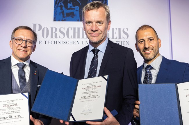 Gewürdigt wurde die Forschung für die erste industrielle E-Fuel-Produktion in Patagonien (Chile). Preisträger sind heuer Dipl.-Ing. (FH) Karl Dums (Dr. Ing. h.c F. Porsche AG/Stuttgart), Dipl.-Ing. (FH) Marcos Remedios Marques (vowrmals Porsche AG, jetzt HIF Global) und Dipl.-Ing. Rolf Schumacher (HIF Global).