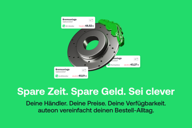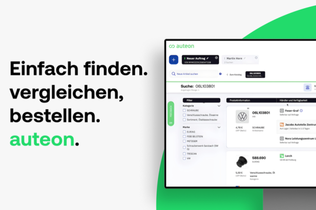 „Unser Ziel ist es, Transparenz, die bislang gefehlt hat, in den Ersatzteil-Markt zu bringen“, erklärt Florian Pinger, Gründer und CEO von auteon. Das Münchner Startup hat dafür eine Plattform entwickelt, die das aktuelle Angebot an Kfz-Teilen elektronisch zusammenfasst und den Werkstätten die gesuchten Ersatzteile mit Preisen und Verfügbarkeit strukturiert und übersichtlich anzeigt. „Für die Kfz-Betriebe entfällt die Suche nach dem attraktivsten Preis, wir stellen hier Differenzen bis zu 50% fest", ergänzt Vertriebsleiter Patric Sattler. "Darüber hinaus wird auch die Lieferfähigkeit gleich mit angezeigt, das ist oft noch wichtiger."