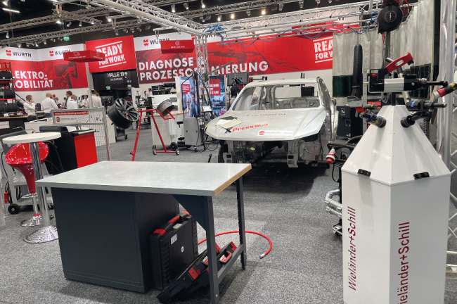 Auch das Karosseriesegment ist wichtig und ebenfalls unabhängig vom Antrieb. Hier bietet Würth auch innovative Lösungen, unter anderem den Multimaterial--Arbeitsplatz von Wieländer+Schill.