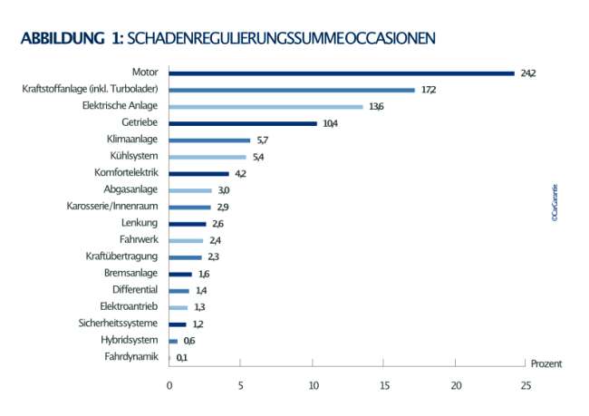 - 20 Prozent der Schadenfälle bei Gebrauchten treten nach mehr als 25.000 Kilometern auf.