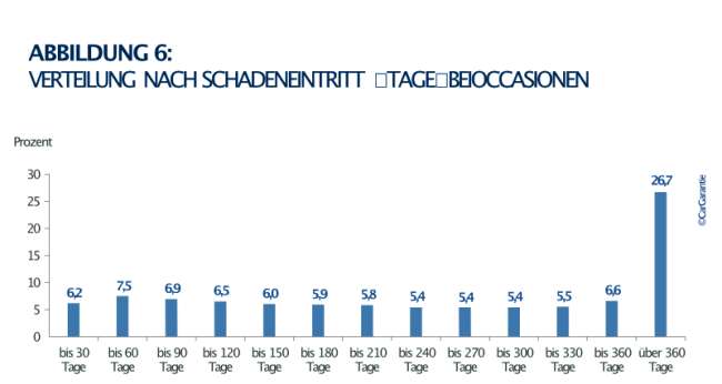 - Zeitpunkt des Schadeneintritts bleibt stabil – 27,5 % Schadensfälle bei Gebrauchtwagen treten innerhalb der ersten 5.000 Kilometer auf.