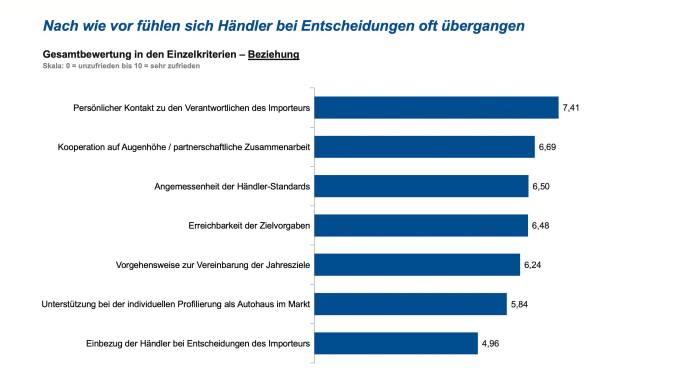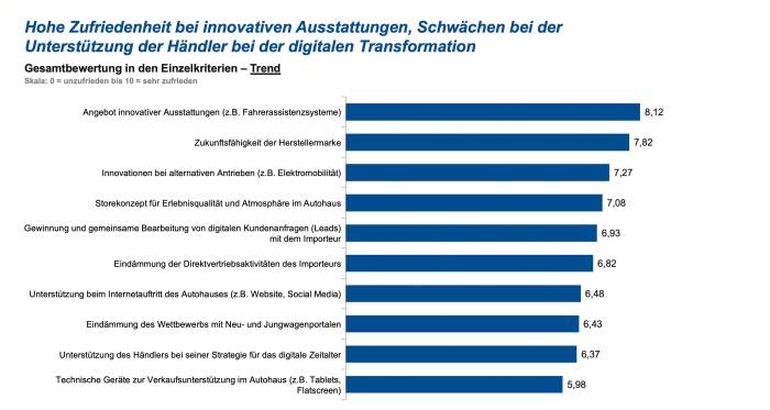 Das Image der Marke, die Zukunftsfähigkeit des Herstellers. Das Angebot an innovativen Ausstattungen und die Qualität der Fahrzeuge. Lauter Punkte, bei denen Importeure nicht viel (oder eigentlich gar nichts) beitragen können: Was diese Punkte gemeinsam haben? All das kommt schon direkt aus dem Werk. Und diese Kriterien werden von den Händlern und Werkstätten ganz besonders gelobt.