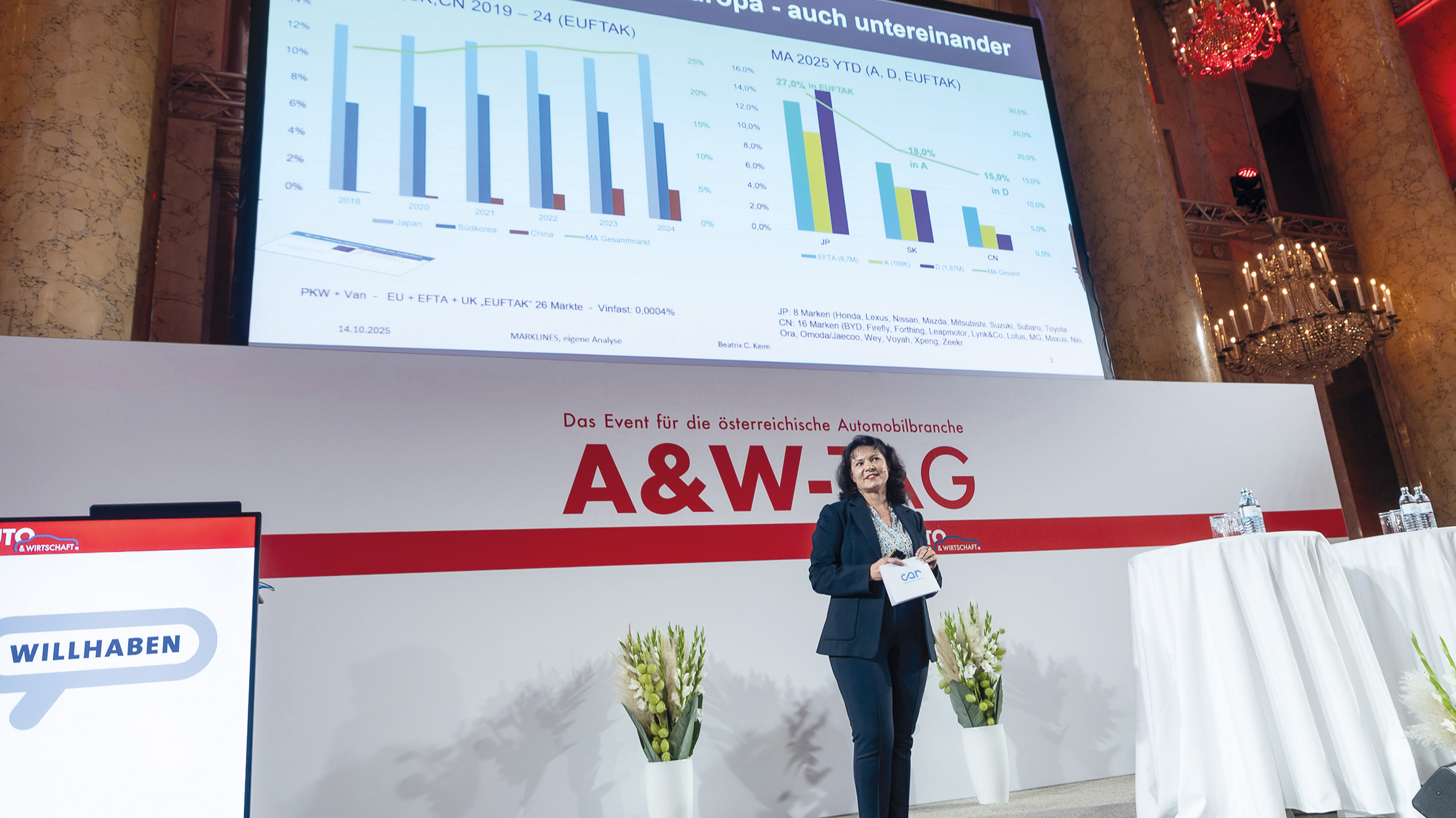 „Wir kennen die Entwicklung, mit Japan und mit Südkorea“, analysiert Keim den Markteintritt der chinesischen Hersteller in Europa. „Der Gebrauchtwagenstatus, die Markenbekanntheit und die Kundenakzeptanz in Europa stehen erst am Anfang.“ Image muss erst aufgebaut werden, das wird laut Keim aber deutlich schneller erfolgen als bei anderen asiatischen Newcomern. „In den 1970er-Jahren kamen die Japaner als Nischenanbieter – heute sind sie etablierte Qualitätshersteller. Bei China wird es schneller gehen. Auch durch Sie, die Händler“, spricht Keim die beim A&W-Tag anwesenden Auto-Händler an.“