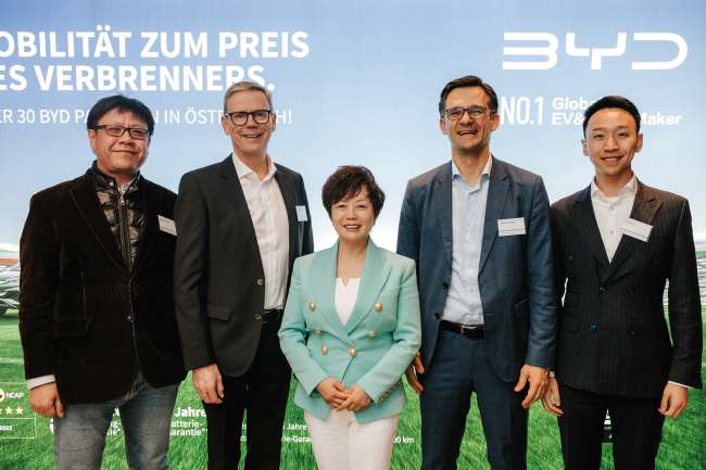 Ausbauen will Li auch die Zahl der Händler: Sie nannte 120 in Deutschland, 150 in Frankreich und 50–60 in Österreich als Ziel bis Ende 2025. Derzeit hat BYD in Österreich 30 Händler; in den ersten 10 Monaten wurden mehr als 3.200 Autos neu zugelassen.