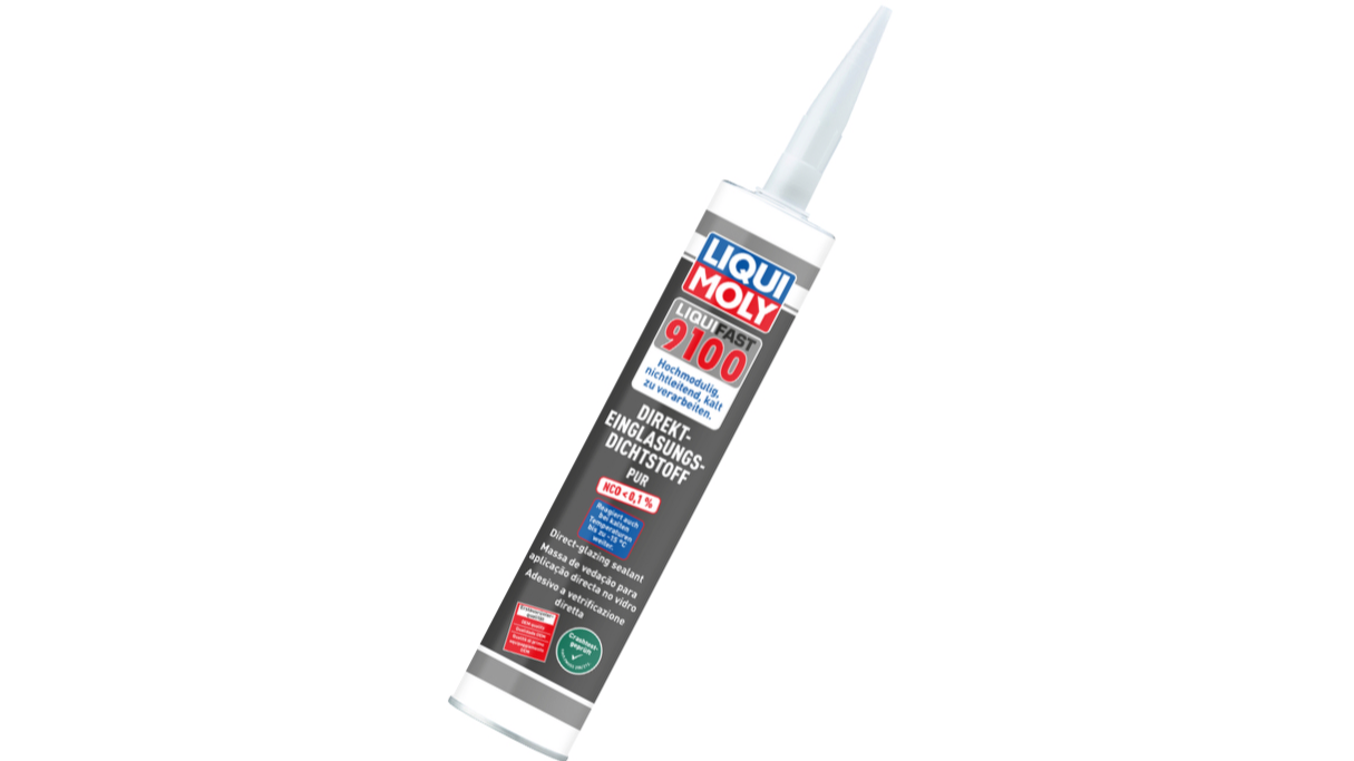 Bei Liquifast 9100 handelt es ich um einen modernen, hochmoduligen, nichtleitenden 1K-PUR-Scheibenklebstoff. Da das Produkt auch ohne Silikonanteile auskommt, können Reste der Kleberaupe nach dem Austrennen der Scheibe überklebt werden und die Verbindung hält.
