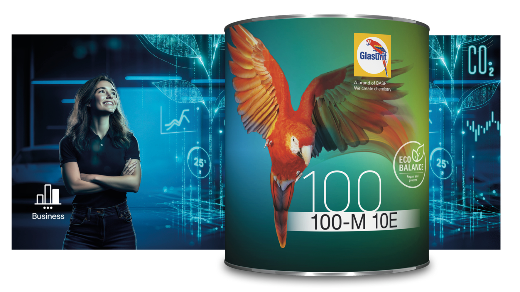 Dazu stellt die Lackmarke die nach eigenen Aussagen „nachhaltigste Lacktechnologie der Branche“ bereit – in Form der Reihe 100 und der Eco Balance Produkte. Ein zentraler Bestandteil ist das Wasserbasislacksystem der Reihe 100, das Ressourcen schont und gleichzeitig höchste Reparaturqualität sicherstellt. Kommuniziert werden bis zu 50 Prozent weniger CO2-Emissionen durch den Einsatz von bis zu 100 Prozent nachwachsenden Rohstoffen, der niedrigste Lösemittelanteil im Markt (40 Prozent unter dem EU-Grenzwert), eine höhere Ergiebigkeit und damit ein geringerer Materialverbrauch.