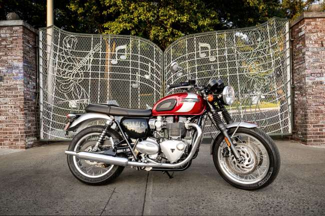 Um die T120 noch benutzerfreundlicher zu machen, kann zwischen den Fahrmodi „Rain“ und „Road“ gewählt werden, um das Fahrverhalten des Motorrads an die jeweiligen Bedingungen anzupassen. Weitere moderne Features sind LED-Leuchten, eine USB-A-Ladebuchse unter dem Sitz und eine Wegfahrsperre.