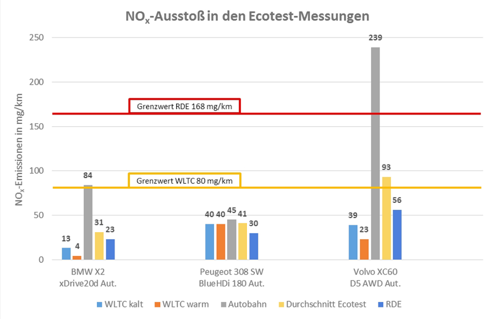 Im Eco-Test des ADAC haben moderne Euro 6d-TEMP Diesel von BMW, Peugeot und Volvo gut abgeschnitten und die gesetzlichen Vorgaben in puncto NOx teilweise signifikant übererfüllt.