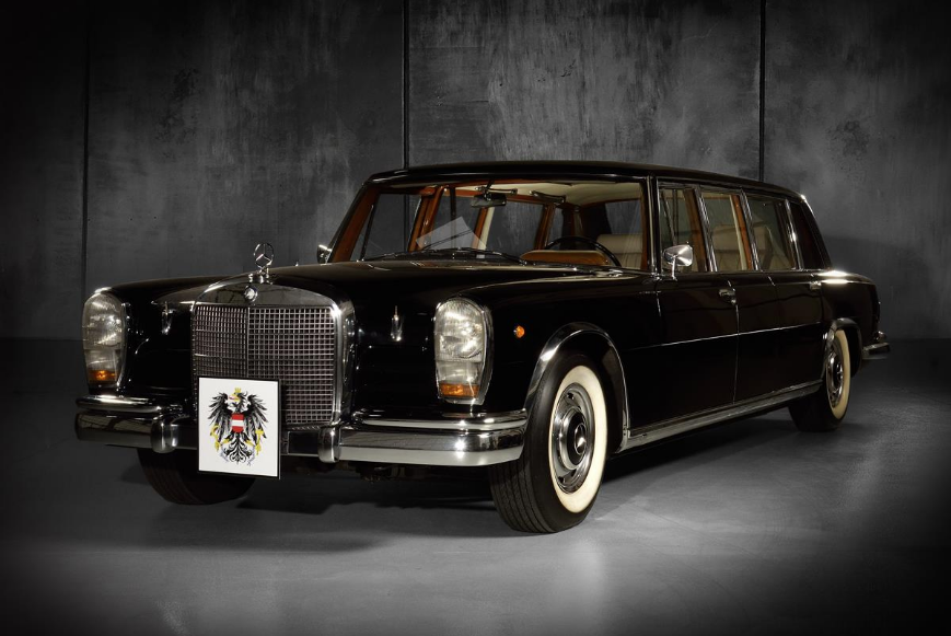 Letzteres trifft auf den in der Auktion offerierten Mercedes-Benz 600 Pullman 1964 zu, beziffert zwischen 180.000 € und 260.000 €. Er ist ein Meilenstein der Automobilgeschichte und gleichzeitig ein Stück österreichischer Zeitgeschichte. Gleich 3 Staatsoberhäupter – die Präsidenten Adolf Schärf, Franz Jonas und Rudolf Kirchschläger und ihre Gäste – wurden in der 6,20 m x 2 m großen Limousine chauffiert.