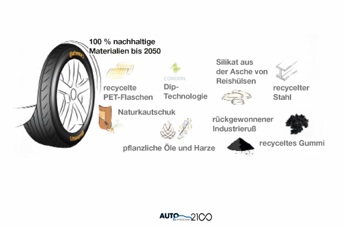 Zum Beispiel Abfallprodukte aus der Landwirtschaft: die Asche von Reishülsen, Kautschuk aus Löwenzahn, aber auch recyceltes Gummi oder PET. Continental ist auf dem Weg, der fortschrittlichste Hersteller in der Reifenindustrie zu werden, wenn es um Nachhaltigkeit geht. Bereits heute sind in einem Standard-Pkw-Reifen von Continental rund 15 bis 20 Prozent nachwachsende oder wiederverwertete Materialien verbaut. Dieser Anteil wird ständig erhöht.