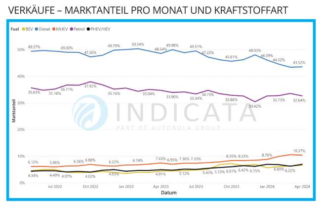 Auf dem österreichischen B2C-Online-Gebrauchtwagenmarkt machte der Diesel in der Vergangenheit 50% der Verkäufe aus.