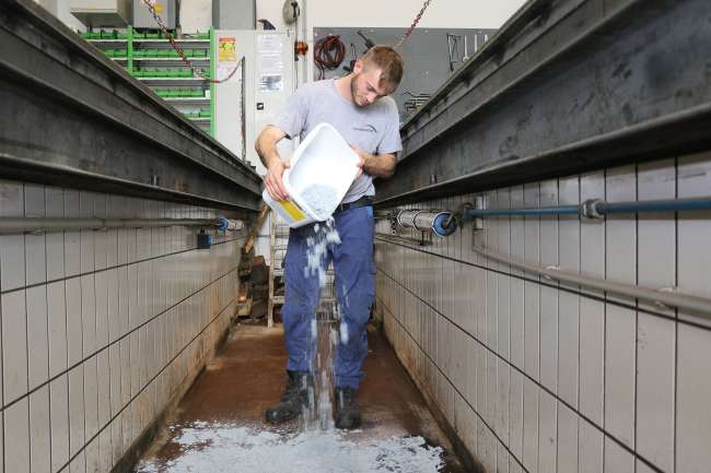 Ein Großteil des 18 Fahrzeuge umfassenden Betonlift-Fuhrparks führt das Bindemittel bereits mit, darüber hinaus wird es in der Werkstätte verwendet. „Früher hatten wir unser Bindemittel in großen Säcken, entsprechend schwierig war die Handhabung“, erklärt der Werkstättenleiter. „Das neue Produkt bietet Vorteile hinsichtlich Saugfähigkeit und Transport und ist zudem mehrfach einsetzbar.“ Zum Einsatz kommt es vorrangig bei Leckagen im Hydrauliksystem. Die Fahrzeuge werden vom Werkstätten-Team umfassend gewartet und Schäden frühzeitig erkannt und beseitigt. Dennoch kann es in Einzelfällen vorkommen, dass unterwegs ein Problem auftritt. „Hier können wir rasch handeln und das Bindemittel auf sämtlichen Oberflächen, egal ob Asphalt oder Schotter, einsetzen“, betont Steurer.